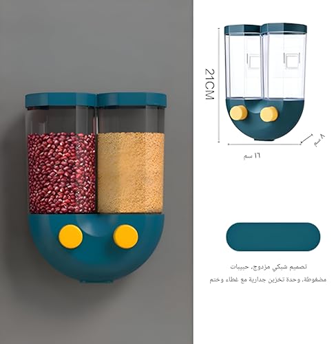 Generic - صندوق توزيع حبوب - تخزين طعام جاف يثبت على الحائط مع إغلاق محكم، سعة 1500 مل، مثالي لتنظيم الوجبات الخفيفة ومستلزمات المطبخ على سطح الطاولة