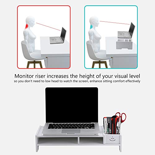 - Monitor riser increases the height of your visual level, so you don't need to low head to watch the screen, enhance sitting comfort effectively