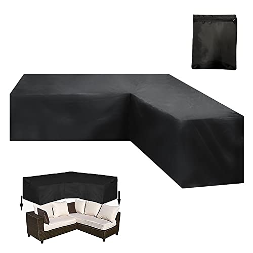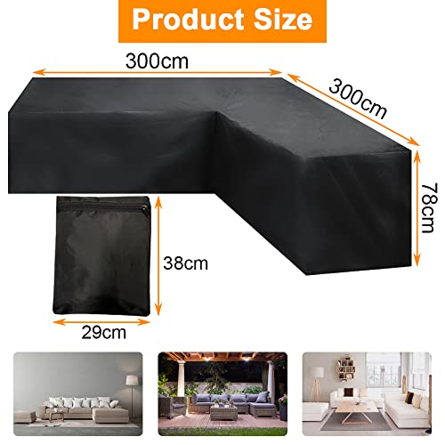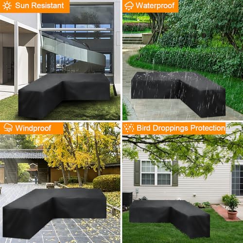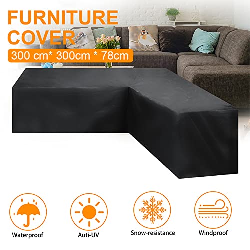 Cestbella - غطاء اريكة الفناء على شكل حرف V، مجموعة اغطية واقية للاريكة المقسمة مقاومة للماء والاشعة فوق البنفسجية والغبار للجلوس في الحديقة الخارجية 300 سم × 300 سم 78 سم، أسود