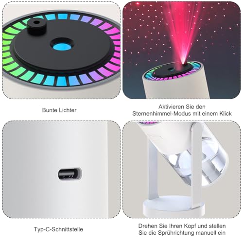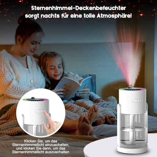 - Starry sky effect for a special atmosphere: The starry sky humidifier with its unique light projection provides an impressive starry sky experience. Simply press the right button to turn on the starlight function, and experience a magical atmosphere in your room or car.