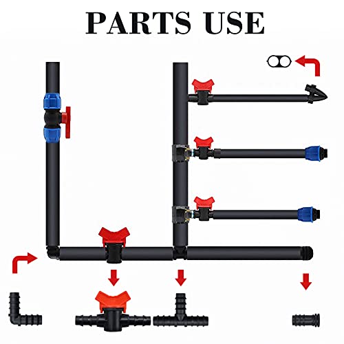 - WIDE RANGE OF APPLICATIONS: The drip irrigation fittings with 1/2 inch spray hose help to easily connect your irrigation system, which is very suitable for agricultural irrigation systems such as gardens, greenhouses, flower beds, courtyards, etc.