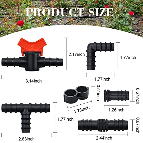 - FITS 1/2 INCH IRRIGATION TUBING: These 16 mm irrigation accessories are suitable for most 1/2-inch drip irrigation tubing.Please check the size carefully before buying.