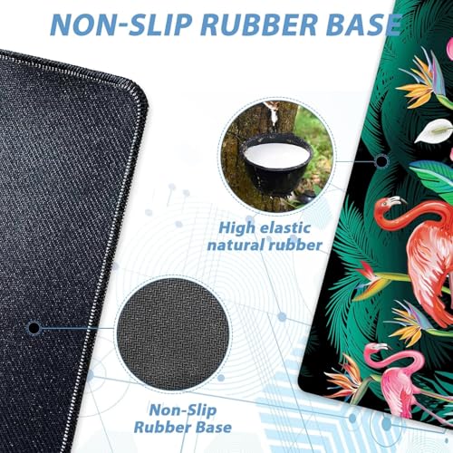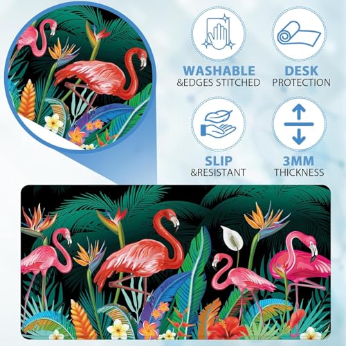 Generic - CGI Tropical Flamingos & Palm Leaves Gaming Mouse Pad (70× 30cm) for Keyboard and Mouse Desk Mat – Anti Slip Rubber Base – Stitched Edges – Waterproof – Speed Edition