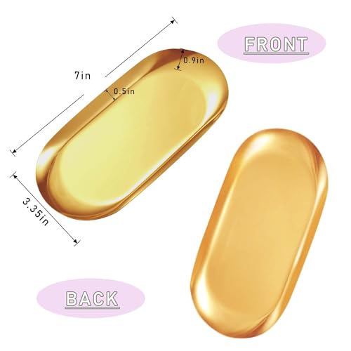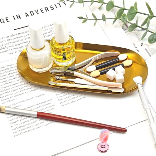 - [ديكور وتخزين متعدد الاستخدامات]: يبلغ مقاس صينية التقديم الذهبية متعددة الوظائف هذه 18 سم × 9 سم × 1 سم، فهي مثالية لحفظ أدوات الأظافر واكسسوارات الأظافر وأحجار الراين والحلي الصغيرة أو مستحضرات التجميل، كما يمكن استخدامها أيضًا كقطعة ديكور أنيقة للعرض على الطاولات وطاولات القهوة والأماكن المخصصة في صالونات السبا.