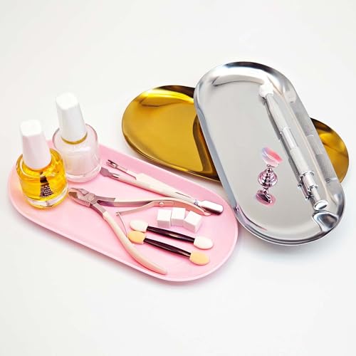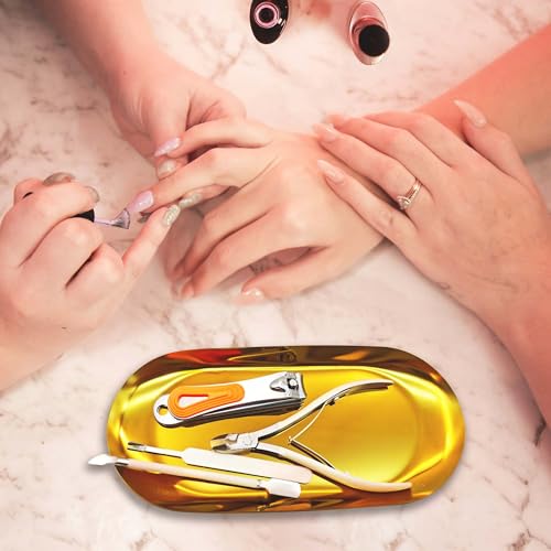cgllwnmix - صينية ذهبية لأدوات الأظافر للديكور وتخزين وعرض اكسسوارات المانيكير، أطباق لتنظيم المجوهرات وأحجار الراين، منظم مستحضرات التجميل، طبق بيضاوي صغير مزخرف لفن الأظافر، طبق تخزين صغير من cgllwnmix