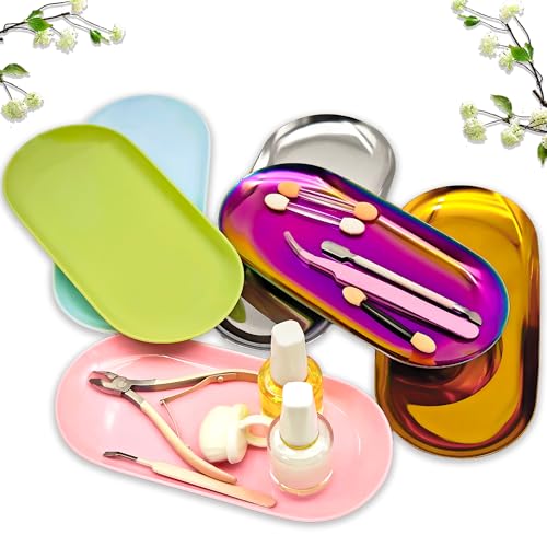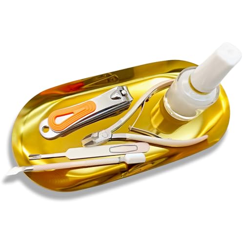 - [تصميم وزن خفيف للغاية ومتين]: بوزن 93 جم فقط، تبدو هذه الصينية الذهبية لأدوات الأظافر خفيفة كالريشة لكنها متينة ولا تثقل الرفوف وبفضل هيكلها المصنوع من الفولاذ المقاوم للصدأ، فإنها تضمن استخدامًا يدوم طويلًا لتنظيم أدوات الأظافر أو المجوهرات أو مستحضرات التجميل دون حدوث انبعاجات.