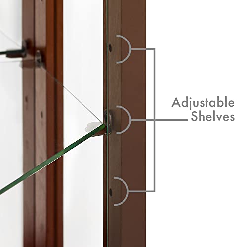 - ADJUSTABLE SHELVES: Within the glass curio cabinet you'll find 4 tempered glass shelves which can be adjusted in height, and 2 fixed wood shelves. There is unlimited flexibility when it comes to fitting your collectables or dishes in this curio cabinet! Each shelf has a weight capacity of 15 lbs.