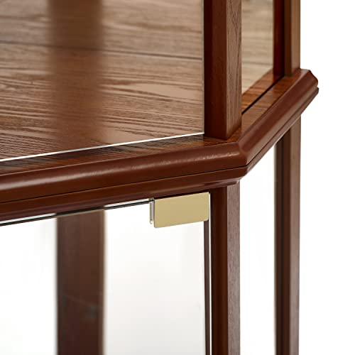 - MIRRORED DISPLAY CABINET: Available in Oak, Cherry, and Walnut finishes, this curio cabinet has a mirrored back panel for a pleasing view at any angle. It fits neatly into any corner of your home and can be used to showcase China dishes, figurines and collectables of all sizes.