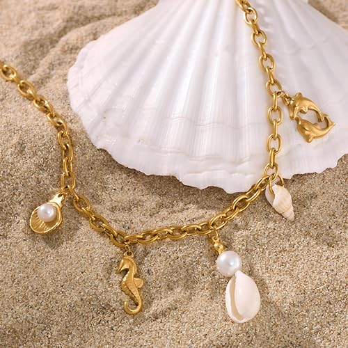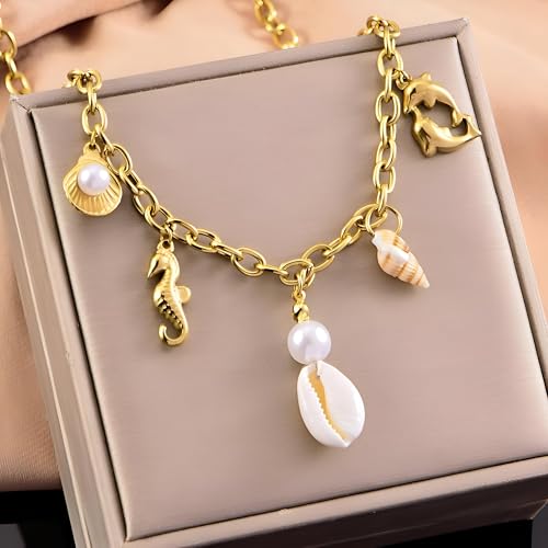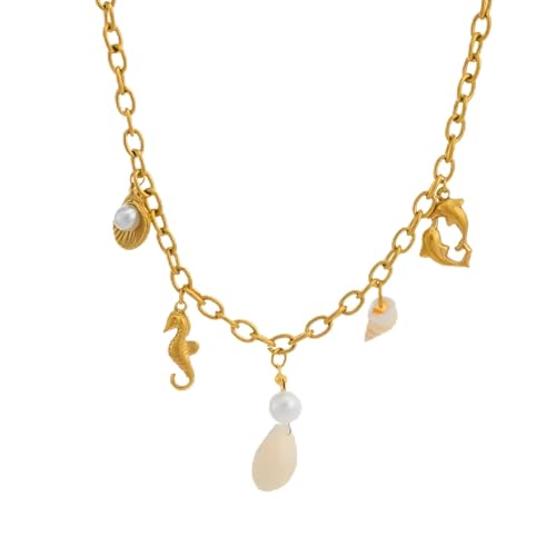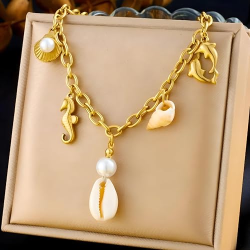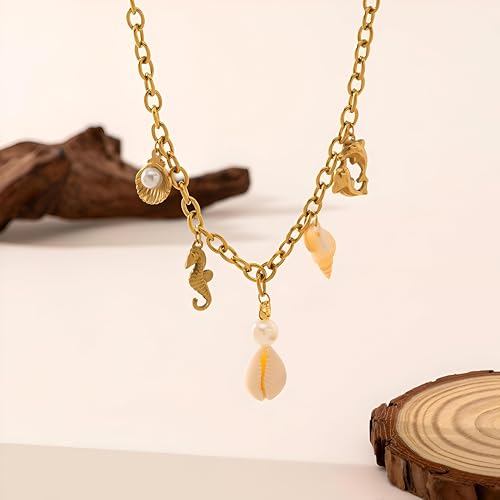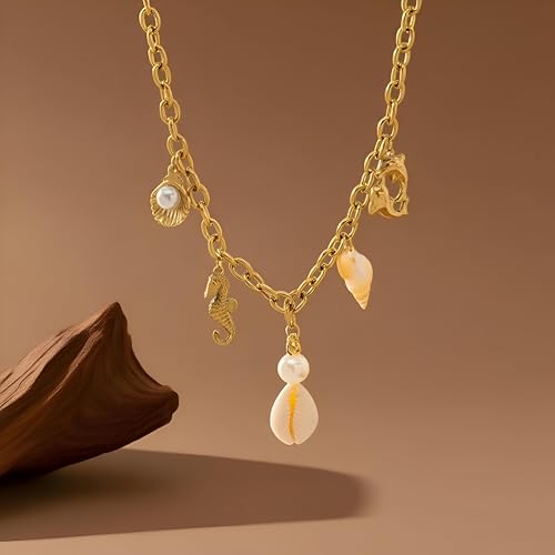 Generic - Chain necklace-beautiful ocean-themed jewelry featuring pearls, seashell charm and a delicate accent for an elegant coastal look