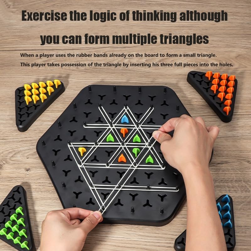 - 【Triangle Chess Game】This chain triangle chess game helps children develop and improve logical thinking skills, attention and patience. Featuring Chain Triangles That Add A Unique, Dynamic Layer To Every Game,Players to make thoughtful decisions and promote thinking and problem-solving skills.
