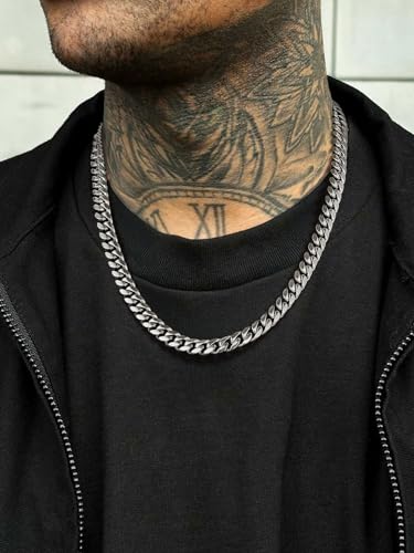 ChainsPro - ChainsPro Men Chunky Miami Cuban Chain Necklace, Custom Available, 6/9/14mm Width, 18/20/22/24/26/28/30inch Length, Gold Plated/Stainless Steel/Black-with Gift Box