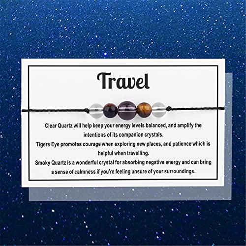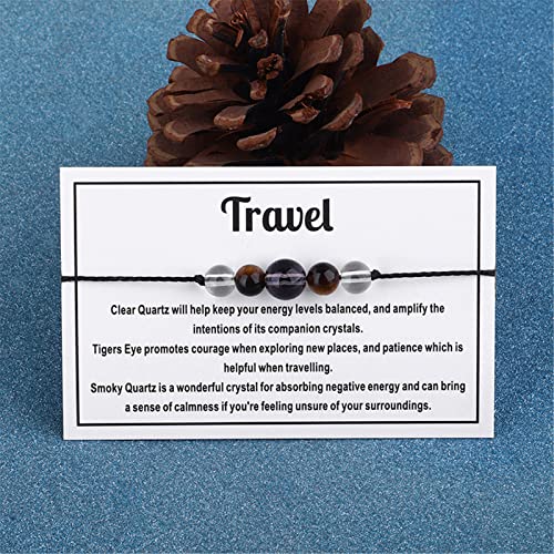 Caiyao - Chakra Crystal Tiger Eye Bead Bracelet with Wish Card for Women Adjustable Spiritual Anxiety Relief Reiki Stone Braide String Bracelet Yoga Meditation Jewelry Gift-D travel