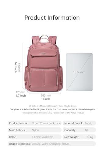 Chantria - شنطة ظهر يومية غير رسمية أنيقة وعملية صغيرة الحجم للاب توب حتى 15.6 بوصة مدمجة ومصنوعة من البوليستر مع عدة جيوب مناسبة للمكتب للنساء من شانتريا، 14 لتر، CB00786
