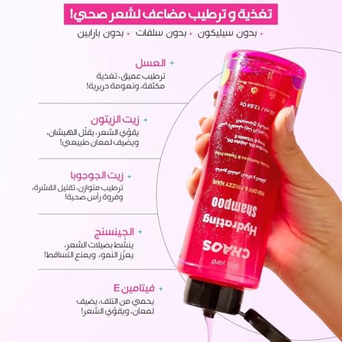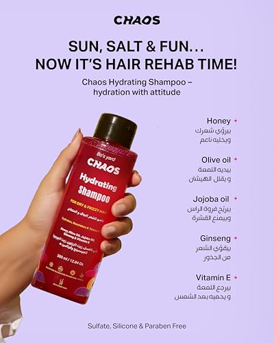 Chaos - Chaos Hydrating Shampoo for Dry and Frizzy Hair, Natural Ingredients with Honey, Olive Oil, Jojoba Oil, Ginseng Root and Vanilla Extract, 380ml