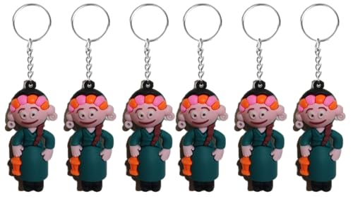Generic - سلسلة مفاتيح بشخصية باسانت بشعر ملون، وجه زهري، زي ازرق مخضر، سلسلة معدنية، مجموعة من 6 قطع