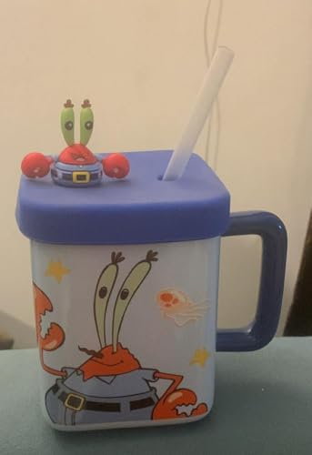 - كوب بتصميم شخصية بوركلين مع جزء علوي ثلاثي الأبعاد ورسومات كرتونية ملونة على جسم الكوب