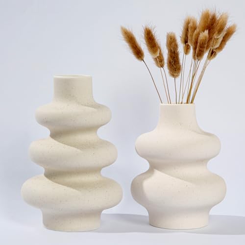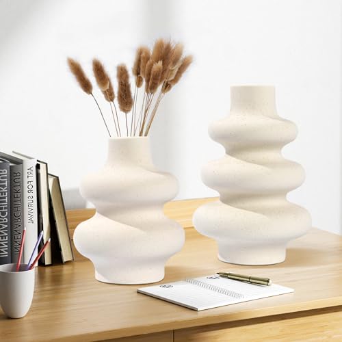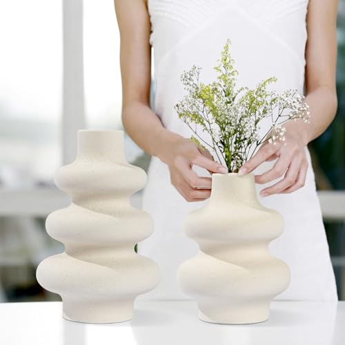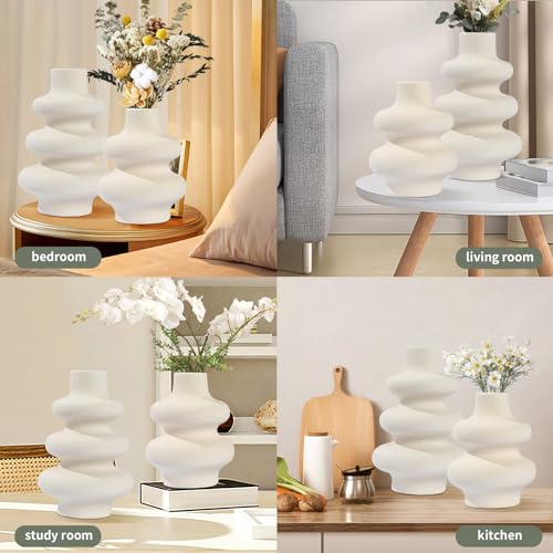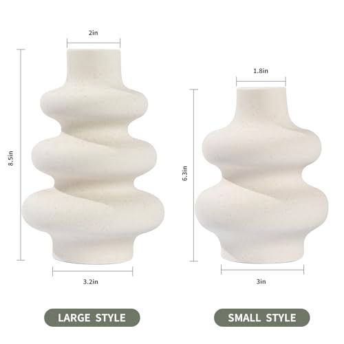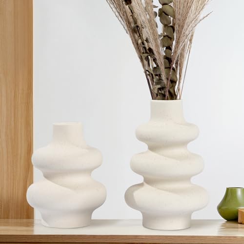 Charemit - White Ceramic Vase Set of 2 Modern Vase Home Decor Boho Round Matte Flower Vase Minimalist Ceramic Vase for Dinning Table Wedding Decoration (2 Set White A)