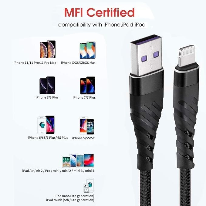 - Our short iphone cable 1m ensures complete high speed charge and sync compatibility with iPhone 12/iPhone 11/11Pro/11Max /iPhone X / XS / XS Max / XR / 8 / 8 Plus / 7 / 7 Plus / 6s / 6s Plus / 6 / 6 Plus / SE / 5S / 5C / 5, iPad Pro, iPad (6th / 5th / 4th / 3th / 2th generation), iPad, iPad mini 4 / 3 / 2, iPad mini, iPad Air 2, iPad Air, iPod Touch (6th / 5th generation).