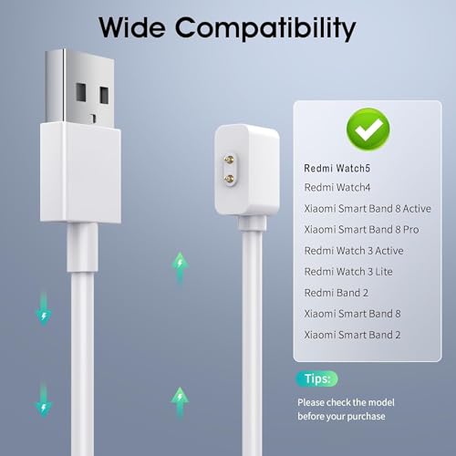 - توافق عالمي: كابل شحن مغناطيسي مصمم خصيصًا لساعة شاومي ريدمي 3 اكتيف، باند 8، باند 2، مما يضمن اتصالاً آمنًا ومستقرًا.