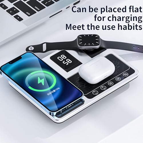 - 4-in-1 Charging Solution: Simultaneously charge your For iPhone 12/13/Pro, iWatch, AirPods Pro, and For Samsung devices on one convenient wireless charging station