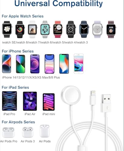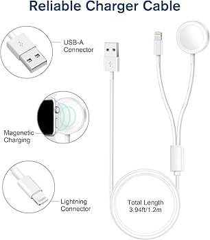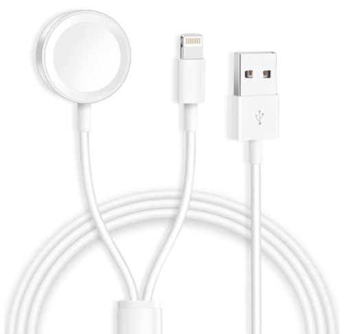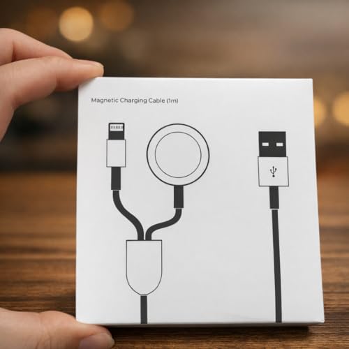 Generic - Charging Cable Compatible with Apple Watch + Lightning Output for Phone Charging USB to Magnetic Connector, White, 1 Meter