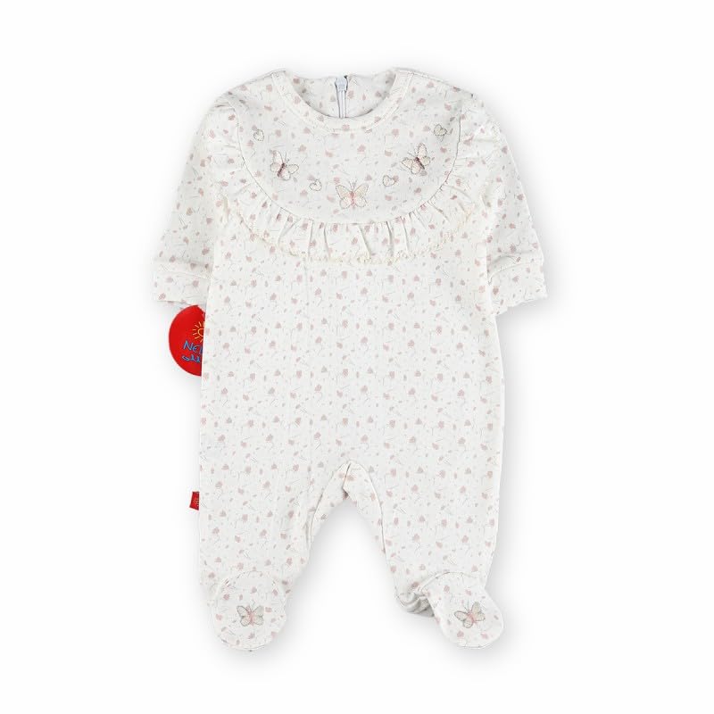 Generic - سالوبيت بطبعة فراشة ساحرة بتصميم رومبر ناعم بحواف مكشكشة للقدمين ومناسب للأطفال 0-3 أشهر