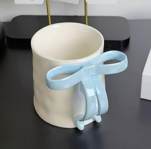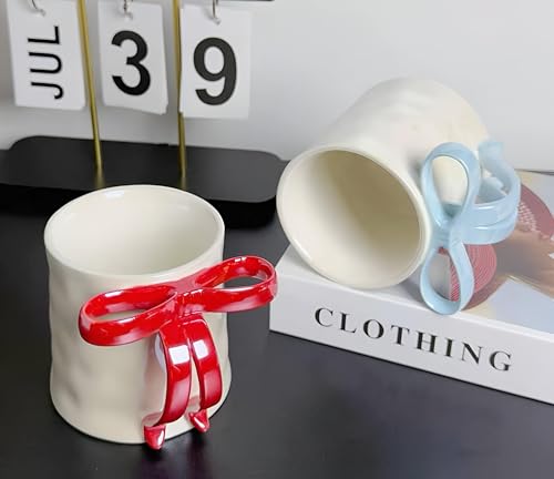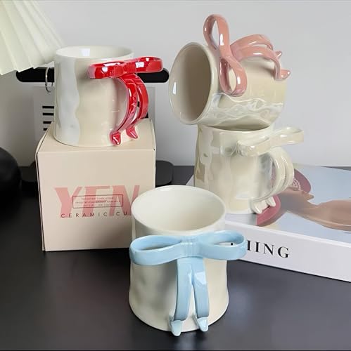 Generic - Charming Mug - Refined porcelain cup in clean white tone, adorned with a colored bow handle signifying joy and delicacy, ideal as a heartwarming gift or personal stylish item. (شل 3)