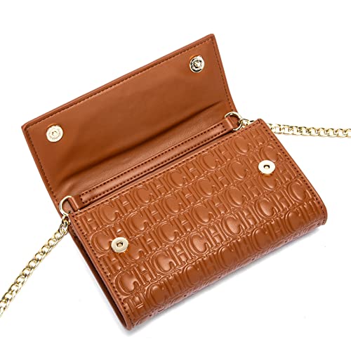 CHCHDIOSA - شنطة يد كروس للنساء من تشتشديوسا، شنط كتف بسلسلة بتصميم مطبوع عليها حروف (بني)