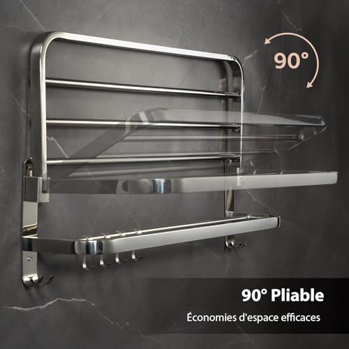 Cheerhom - حامل مناشف من الستانلس ستيل SUS304 من شيرهوم، بدون ثقب، حامل مناشف للضيوف، ذاتي اللصق، قضيب منشفة قابل للطي مع 5 خطافات، 40 سم