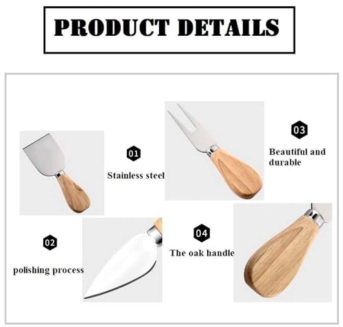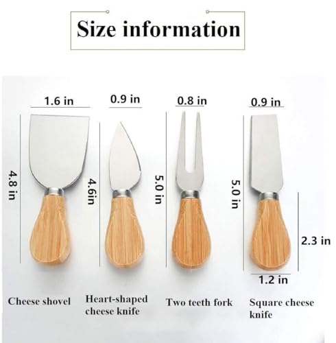 Generic - طقم سكاكين جبن، شفرات ستالس ستيل بمقابض خشبية، ضروري لتقديم الجبن في الحفلات والمناسبات، طقم مكون من 4 قطع