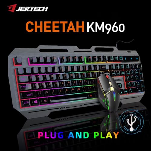 Generic - كيبورد وماوس جيرتيك- CHEETAH KM960 للألعاب، بإضاءة كروم LED - تصميم مريح - 3200 DPI - أزرار 4 ماكرو قابلة للتخصيص
