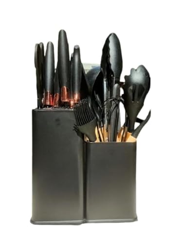 Generic - طقم رشاقه سكاكين وتوزيع شيف بوراك بتصميم عصري وجودة عالية (19 قطعة) لون اسود