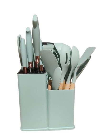 H-Home - طقم سكاكين وتوزيع من شيف بوراك بتصميم عصري وجودة عالية (19 قطعة) - اخضر مينت