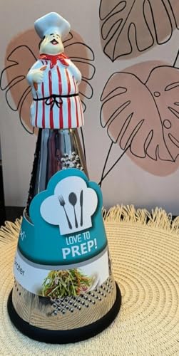 Generic - مبشرة الشيف - مبشرة مريحة من الستانلس ستيل بثلاث شفرات حادة، مادة مقاومة للصدأ 18/10، مقبض خشبي، قاعدة قبضة سيليكون، تصميم 10.5 × 22 سم.