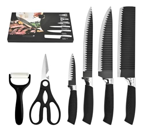 - This complete 6-piece knife set comes with sharp, precision-designed knives, a powerful kitchen scissor, and a peeler, offering all the essential tools needed by both home cooks and professional chefs to elevate their cooking performance to a higher level of efficiency and enjoyment.