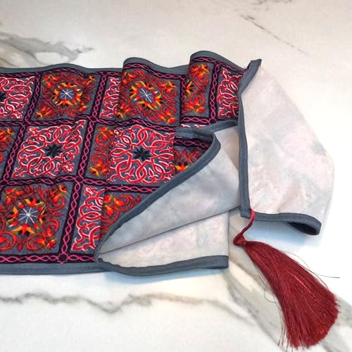 Generic - مفرش ترابيزة من قماش الشنيل مع شراشيب متدلية على كل جانب لغرفة المعيشة وترابيزة الطعام وحامل التلفزيون وترابيزة القهوة مقاس 34 × 170 سم (رمادي غامق)