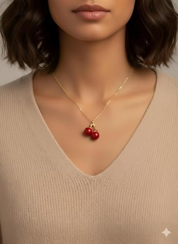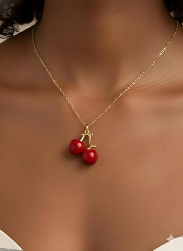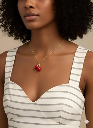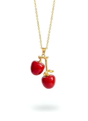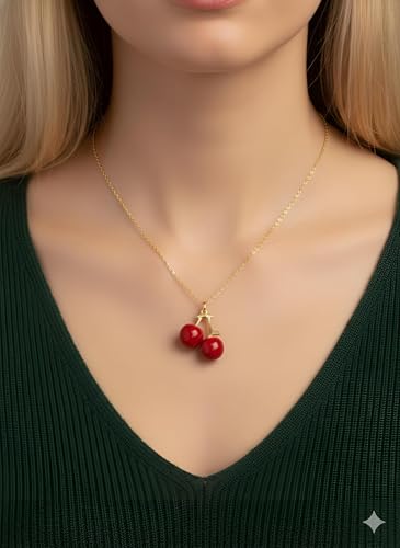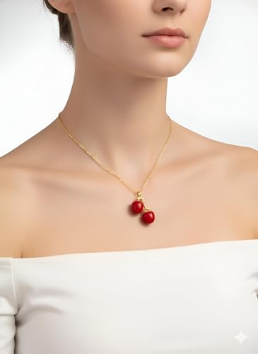 Generic - قلادة بدلاية على شكل كرز - دلاية انيقة على شكل كرز احمر مع سلسلة ذهبية، تصميم فاكهة مطلية بالمينا للنساء واكسسوارات انيقة