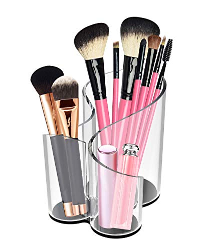 - ✅ Keeps all your cosmetics neatly organized in a beautiful display, and at your fingertips. The 3 cylindrical compartments are connected at the base.