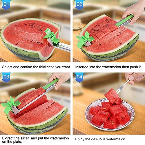 - ✅ Watermelon Slicer including a windmill automatic cutter, just push the watermelon slicer tool into watermelon , and the watermelon cubes will come out automatically.