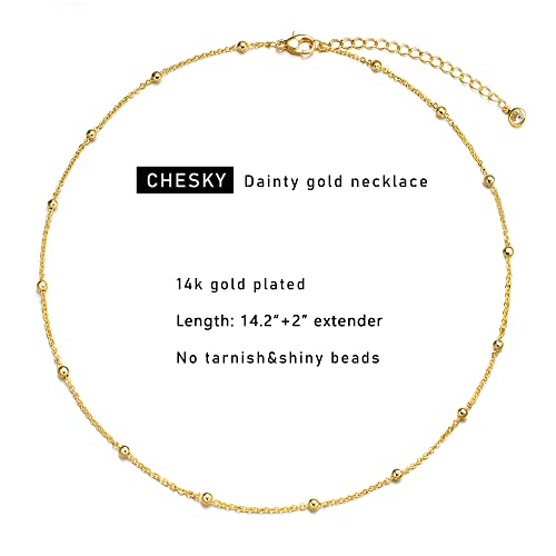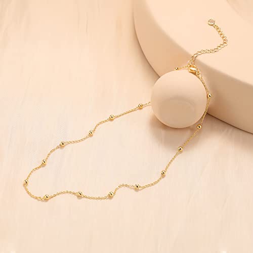 CHESKY - CHESKY Gold Dainty Choker Necklace for Women, 14k Gold Plated Trendy Satellite Beaded Necklaces Minimalist Simple Thin Bead Chokers Short Cute Necklaces Jewelry Gift