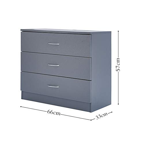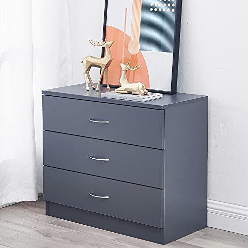 Panana - Chest of Drawers, 3 Drawer With Metal Handles and Runners Unique Anti-Bowing Drawer Support Bedroom Storage Furniture (Gray)