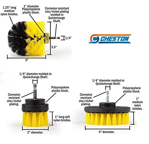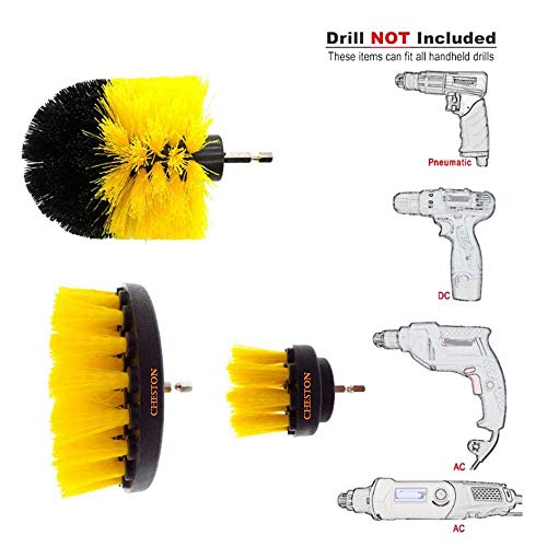 Cheston - Cheston 3 Pcs Electric Drill Brush Power Scrub for Floor, Bathroom, Tile, Car, Grout, Kitchen and Other Cleaning (ONLY Brush Set) Black