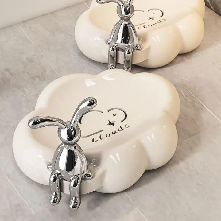 - PREMIUM ELEGANT DESIGN: Beautifully crafted CN soap holder featuring a stylish glossy silver bunny fixed on the rim, adding a luxurious and playful aesthetic to any bathroom or kitchen. Its refined shape and smooth finish enhance your countertop décor, offering a decorative touch while keeping essential items neatly in place. Ideal for modern homes seeking both beauty and practicality.