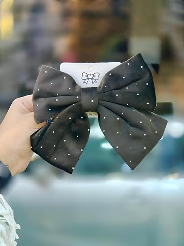 - This fabric hair bow clip combines elegance and practicality with its large, eye-catching design and delicate rhinestone embellishments, making it a versatile accessory suitable for everyday wear, special occasions, or adding a feminine touch to any hairstyle.