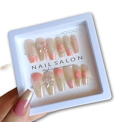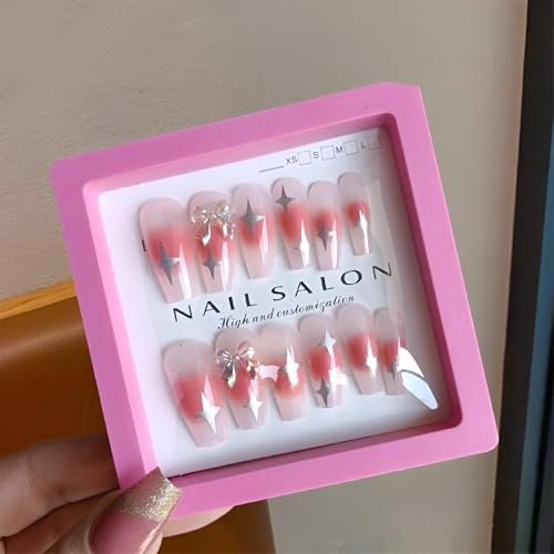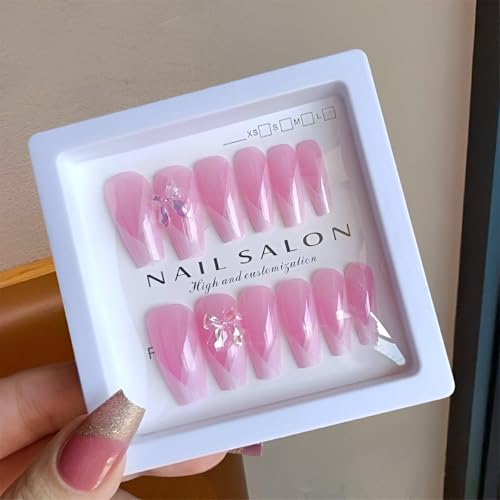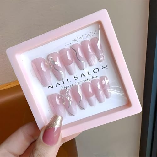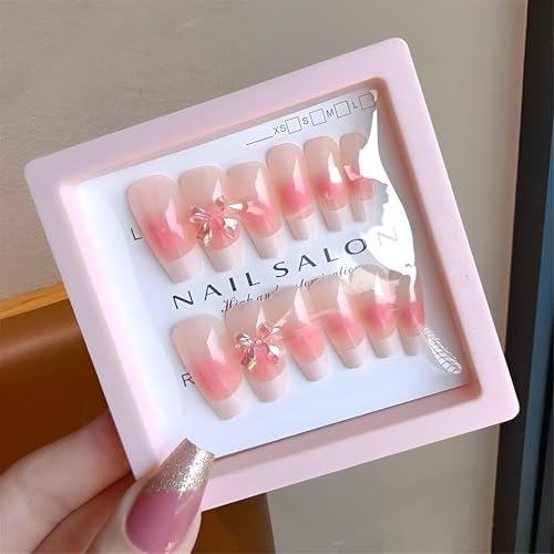 Generic - مانيكير أنيق - مجموعة أظافر صناعية لامعة متوسطة الطول مع فيونكة لؤلؤية ثلاثية الأبعاد مثالية لأزياء عيد الحب والأنماط اليومية الأنيقة للسيدات