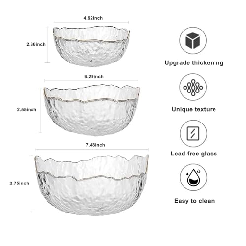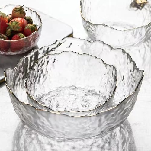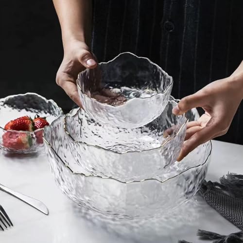 wangsdjy - Chic Tableware Set - 3-Piece Glass Bowls with Gold Accents, Ideal for Serving Fruits, Pasta, and Snacks, Bringing a Touch of Sophistication to Your Dining Table