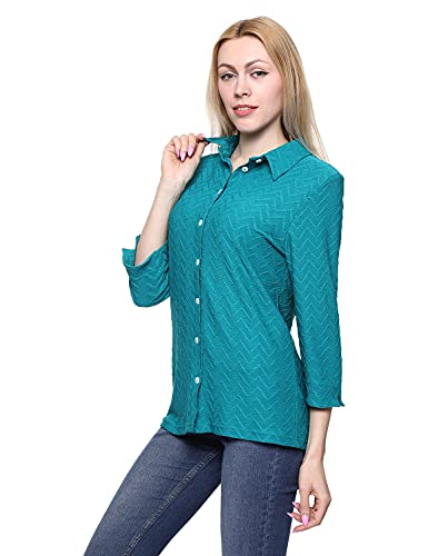 Chica - Chica Chevron-Patterned Three-Quarter Sleeves Shirt for Women