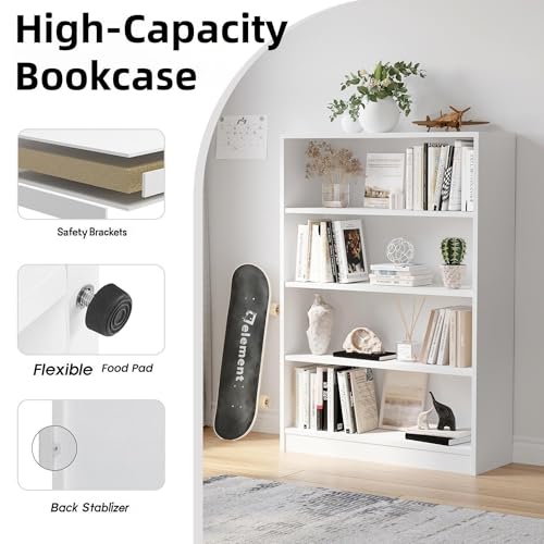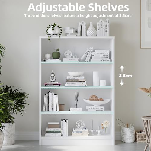 ChicFurnit - Adjustable Shelves Bookshelf, 4 Shelf Modern Office Shelves Display Shelf, 48 Inches Tall Bookcase for Stuff, Books, Large Capacity for Living Room, White