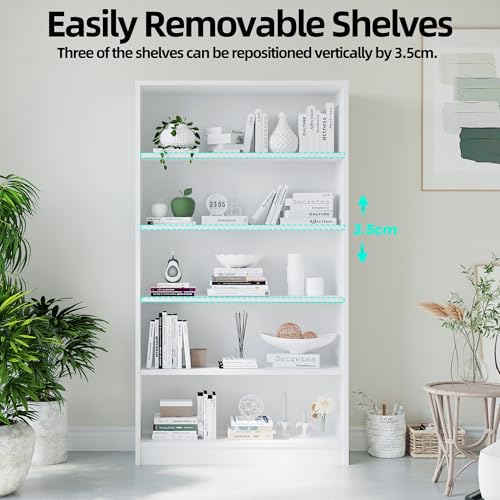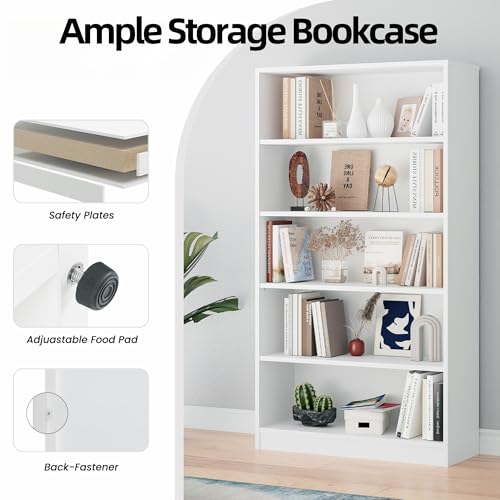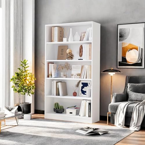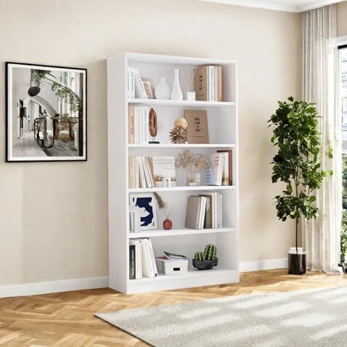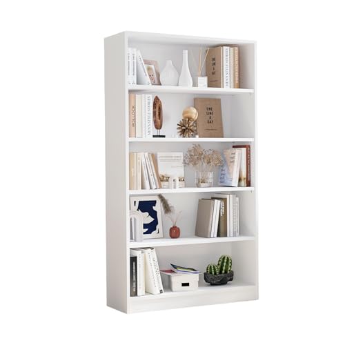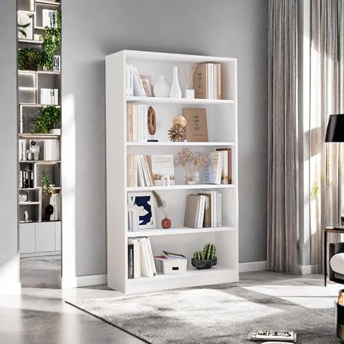 ChicFurnit - رف كتب طويل من شيك فورنيت، بطول 60 انش، خزانة كتب بتصميم مضاد للانقلاب، 5 ارفف قابلة للازالة، حافظة كتب بسعة كبيرة للمكتب وغرفة النوم وغرفة المعيشة والدراسة، ابيض
