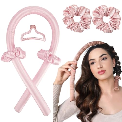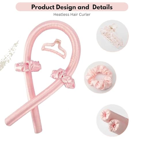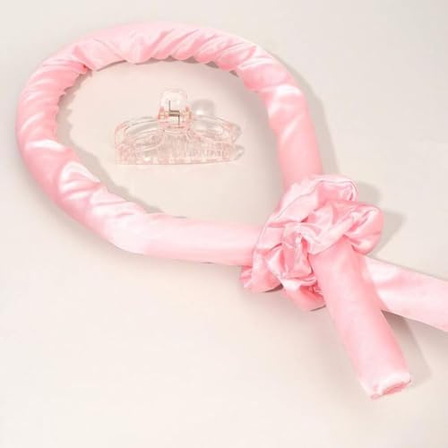 ChicTresses - Women Heatless Curling Rod Headband, Hair Curler for Women, Satin No Heat Curling Ribbon with Hair Clutcher and Scrunchie, Sleeping Curls Silk Ribbon Hair Rollers (Pink)